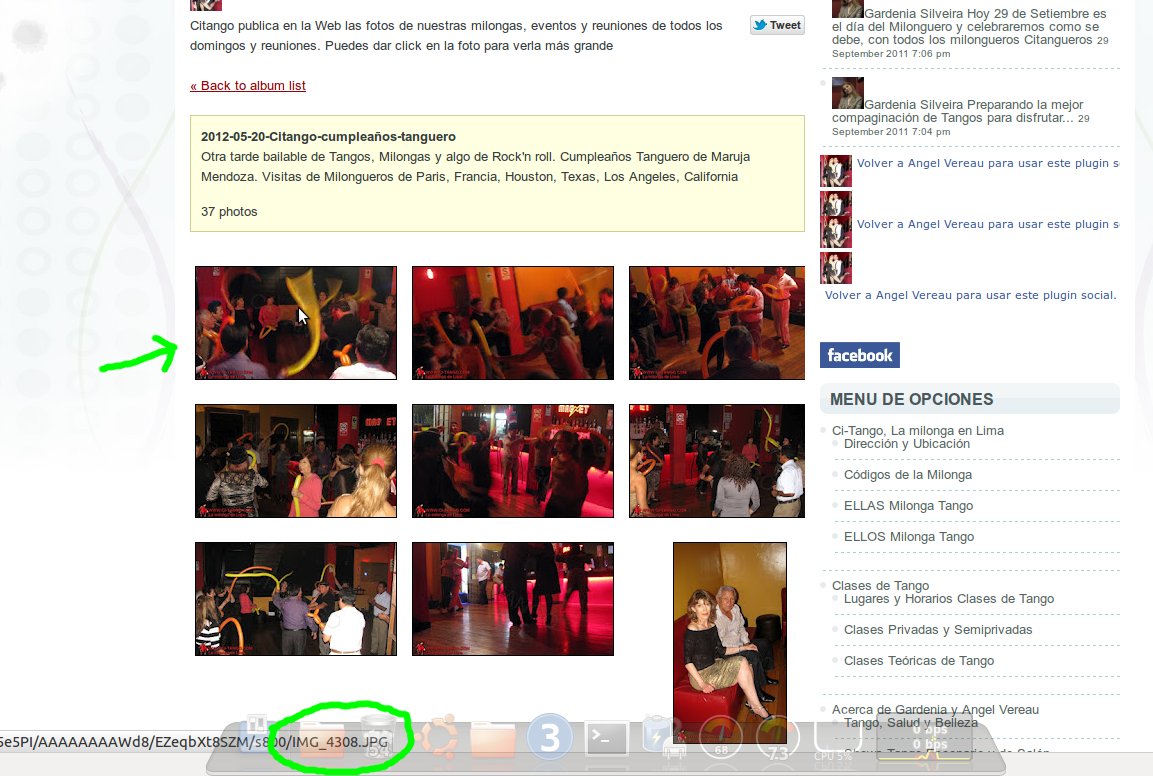 Sólo necesitas escribirnos en esta página con el nombre del archivo. Para saber el nombre del archivo sólo necesitas ir al album de fotos que desees, llevar el cursor hasta la foto elegida y tomar nota del nombre en la barra de complemento después del «/» (ejemplo: IMG_4303.JPG)